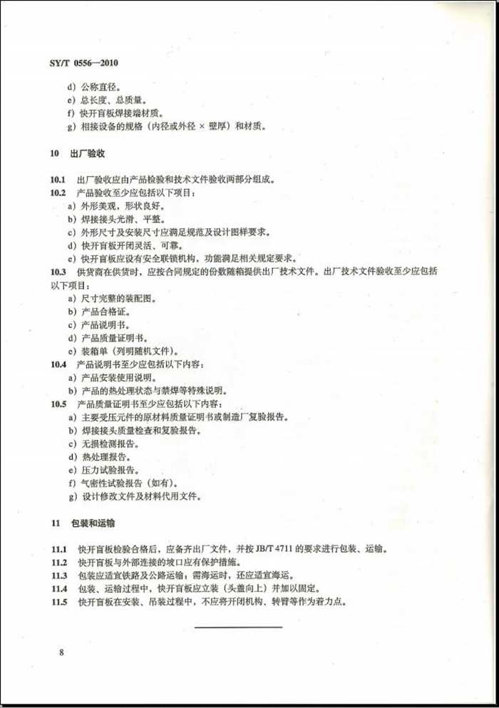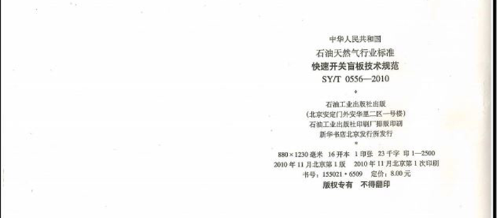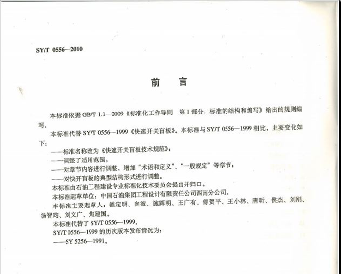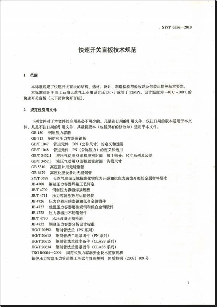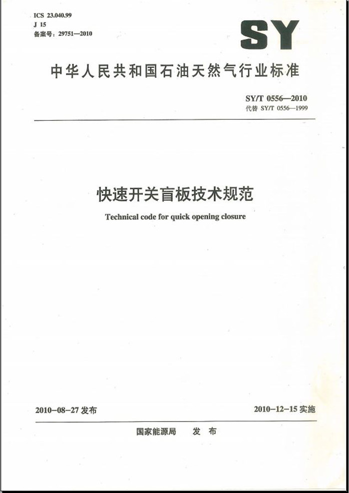 SYT 0556-2010 快速開關盲板技術規(guī)范